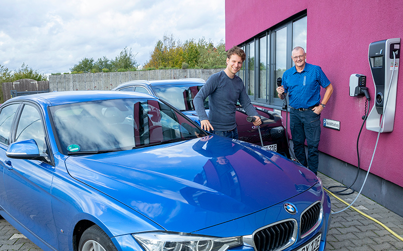 Nächster Schritt: Die Geschäftsführung ist auf Elektro-Autos umgestiegen, die an der hauseigenen Zapfsäule mit dem selbst erzeugten Strom aufgeladen werden. Saubere Sache und gute Fahrt!
